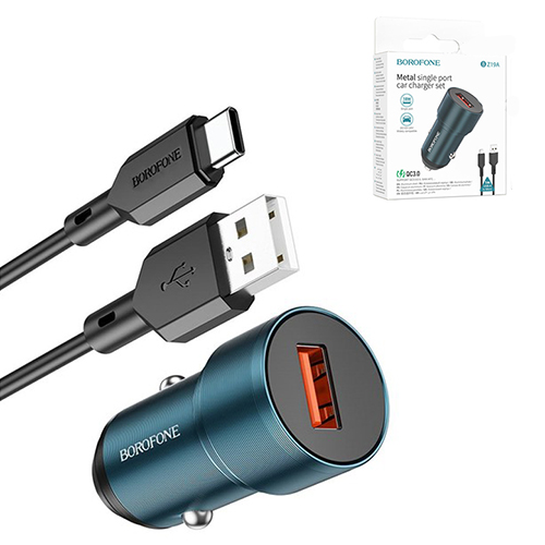 Автомобильное зарядное устройство BOROFONE BZ19 двойной порт Type-C сапфирово-синий (Китай)