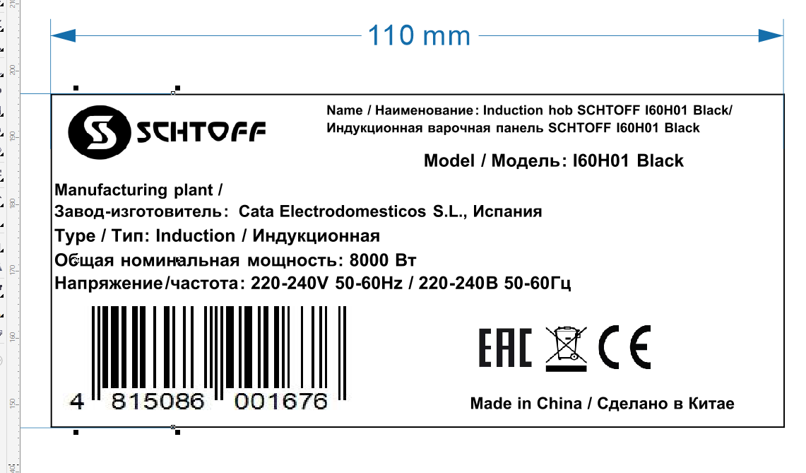 - Передняя левая зона: 225×200 мм, 1800 Вт/бустер 2000 Вт
