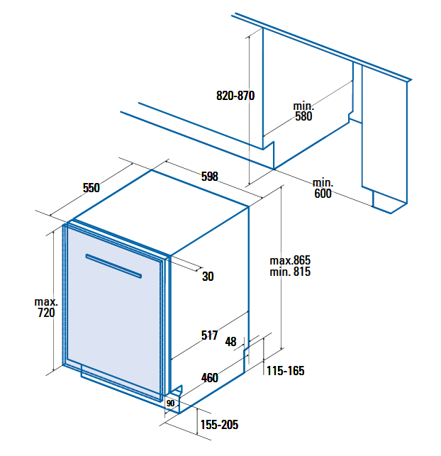 - Глубина: 1150 мм (с дверцей, открытой на 90°).