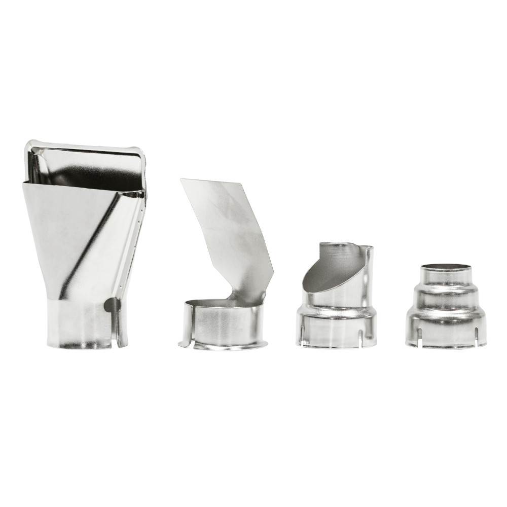 - 4 специализированных сопла в комплекте позволяют адаптировать инструмент для различных задач: от точечного нагрева до равномерного прогрева поверхностей.