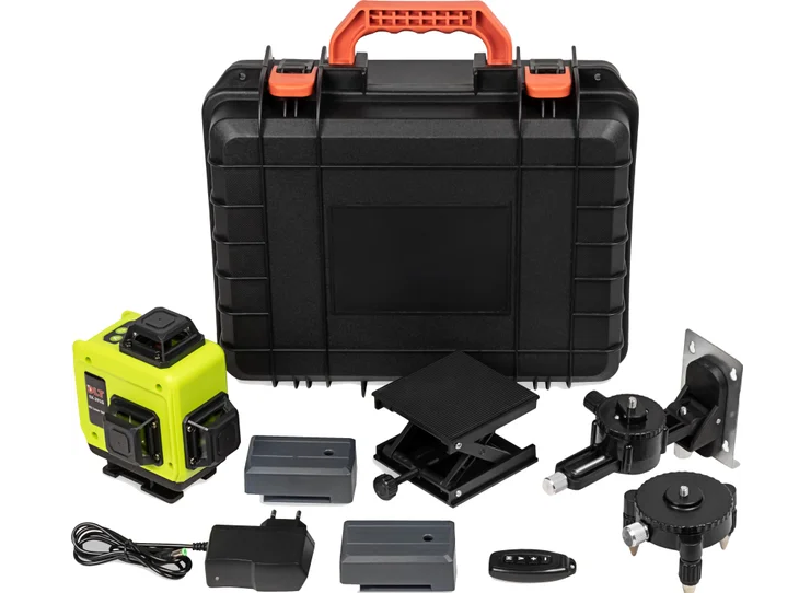 Лазерный нивелир DLT EK-291G строит четыре плоскости по 360° (16 линий) и может создавать наклонные проекции. Рабочий диапазон до 30 метров (в зависимости от освещенности) с погрешностью ±2мм/10м.