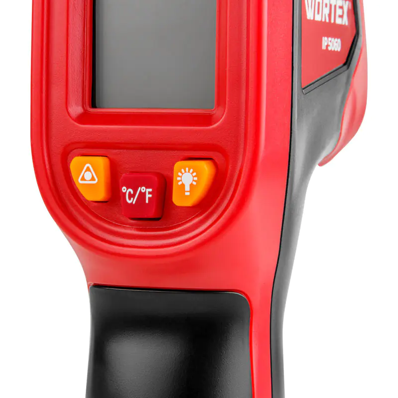 Инфракрасный термометр (пирометр) Wortex IP 5060 (1323797) используется для дистанционного определения температуры. Благодаря регулировке чувствительности, есть возможность измерять температуру объектов из различных материалов и с различным коэффициентом излучения. Встроенный лазер помогает точно навести объектив пирометра на измеряемую поверхность.