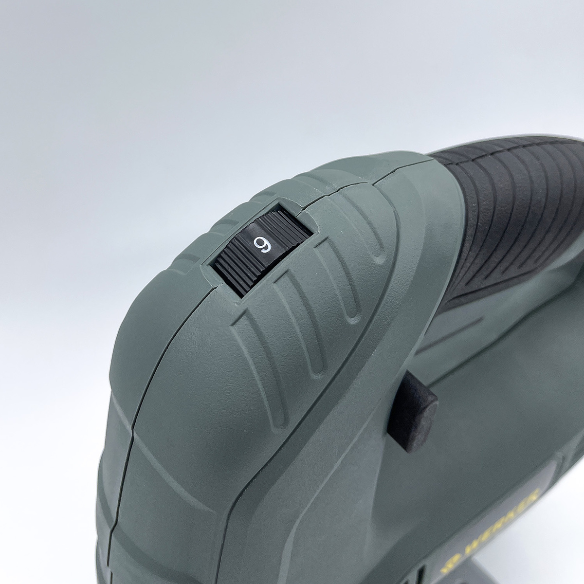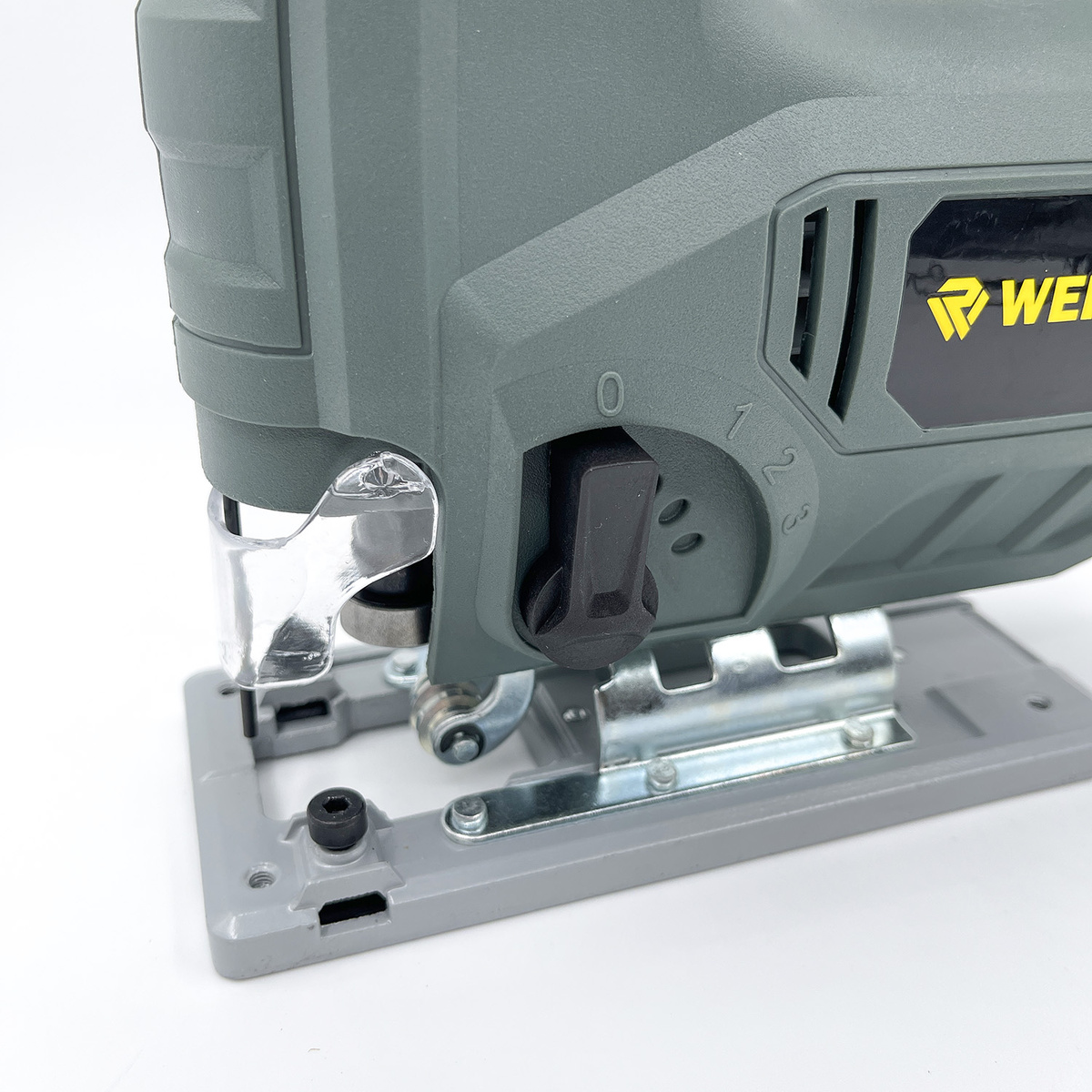 Подходит для бытового применения. Оснащен маятниковым ходом, благодаря чему подходит для распиливания различных материалов. Обладает возможностью регулировки скорости от 800 до 3000 оборотов в минуту. Эргономичная рукоятка облегчает удерживание инструмента, благодаря чему выполнять различные работы гораздо комфортнее. Работает от сети 220 В. Упакован в картонную коробку в комплекте с параллельным упором, пилкой по дереву и переходником к пылесосу.