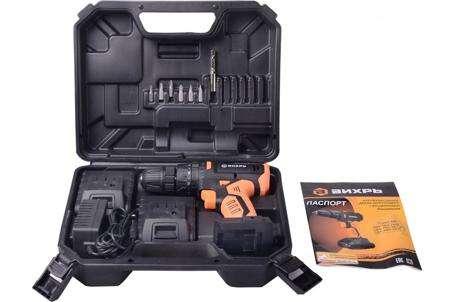 Дрель-шуруповерт аккумуляторный Вихрь ДА-18Л-2КУ/Б (2,0 А/ч) (Китай)
