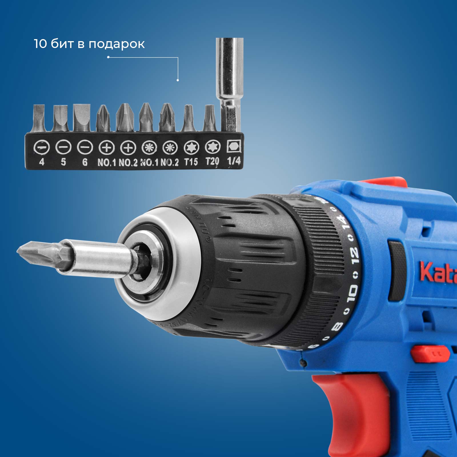 Аккумуляторная дрель-шуруповерт Katana CD 3000 (21В, 1акк, 1,5А/ч, Li-ion, 10 бит, коробка) (Китай)