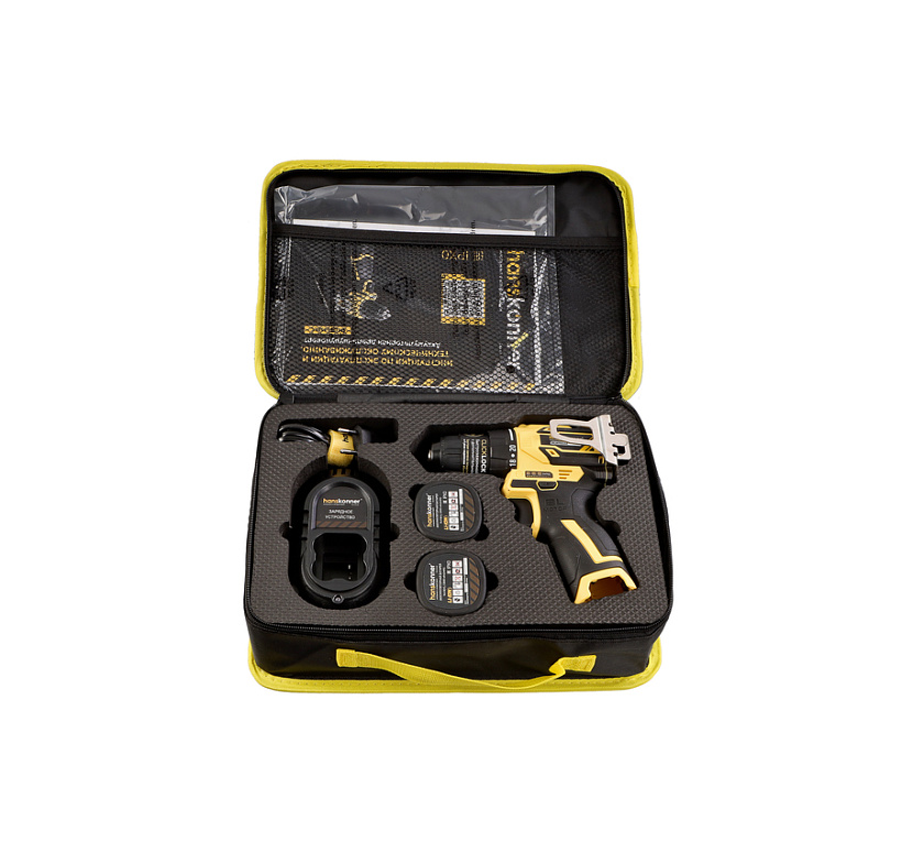 Дрель аккумуляторная бесщеточная HCD1645BLC Hanskonner PLATINUM 4В 45Нм 2х2.0Ач 10мм сумка-кейс (Китай) - одна из самых мощных и компактных в своем классе.