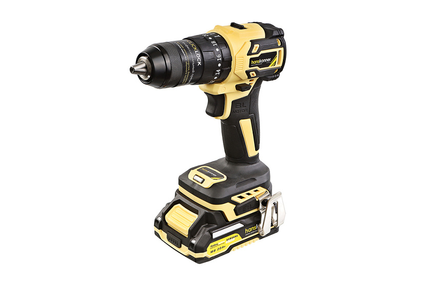 Дрель-шуруповерт аккумуляторная бесщеточная ударная HCD2065PRO HANSKONNER PLATINUM 18В (Китай) подходит для любых работ, в том числе в стесненных условиях и труднодоступных местах без снижения производительности и потери качества работ.