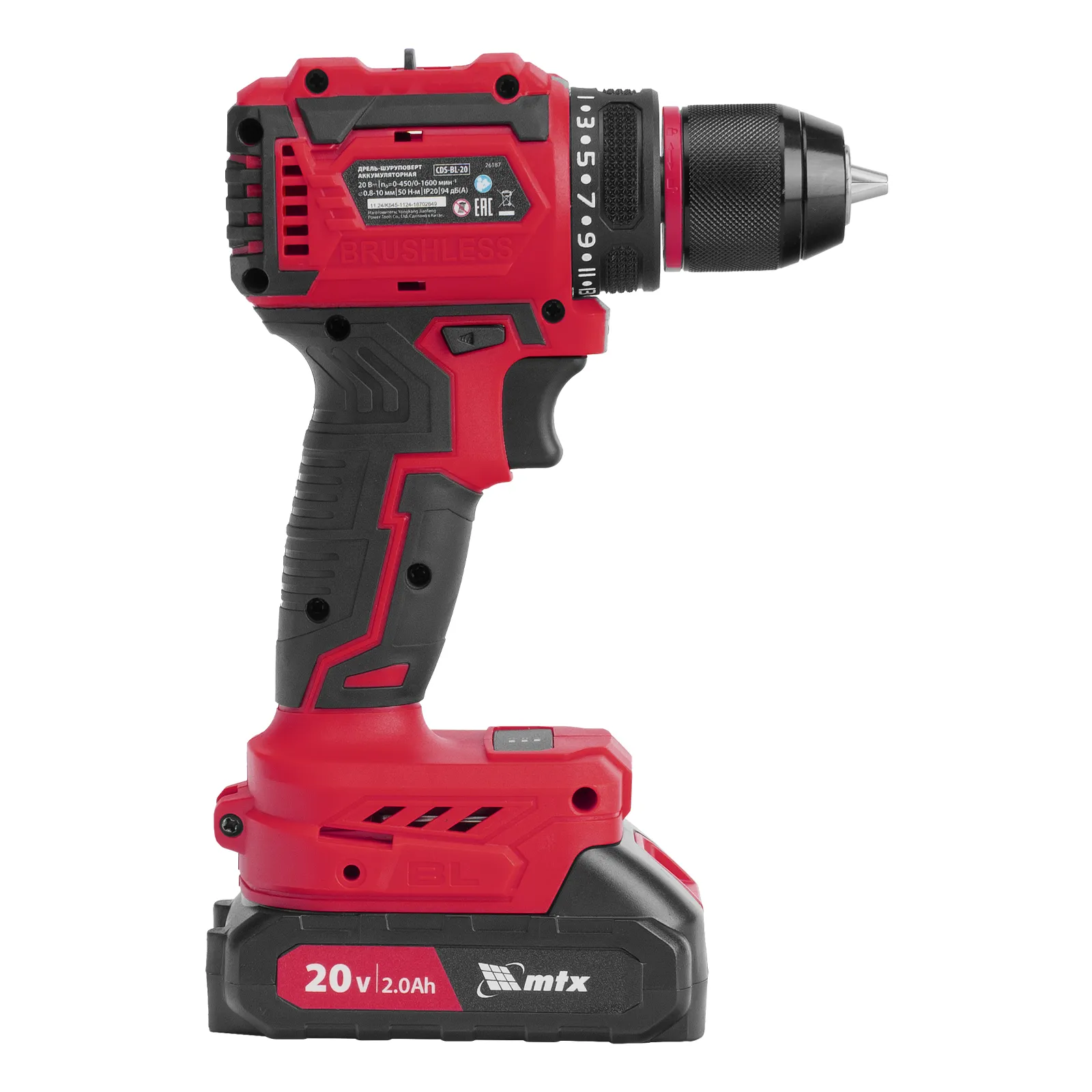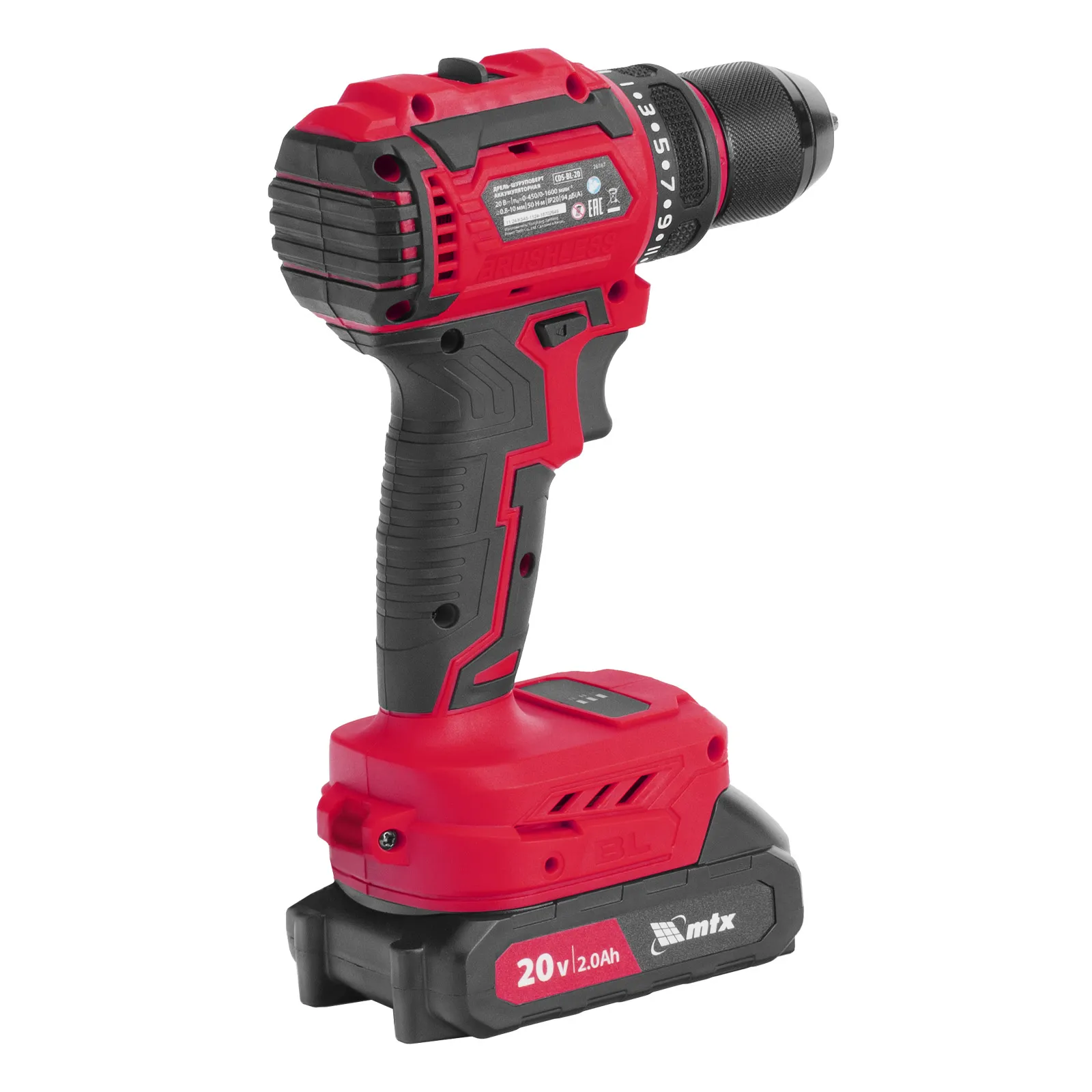 Дрель-шуруповерт аккумуляторная бесщет. CDS-BL-20, Li-Ion, 20 В MTX (Китай)