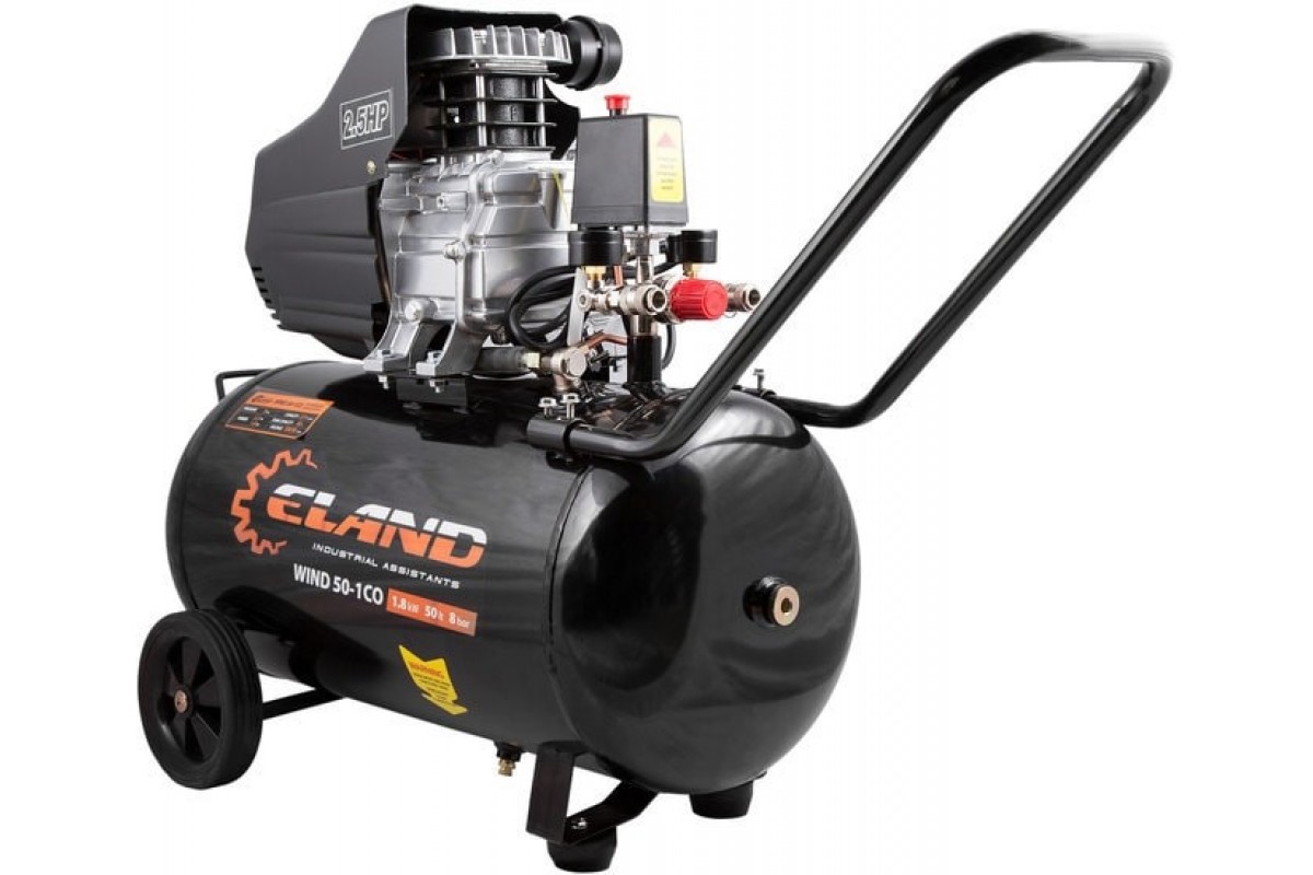 Воздушный компрессор WIND 50-1CО ELAND (Китай) работает в режиме периодического включения и выключения. Включением и выключением управляет реле давления. По достижении заданного давления он отключает электродвигатель, как только давление в ресивере опуститься ниже порогового значения, прессостат вновь включит электродвигатель и нагнетание воздуха в ресивер возобновится. В случае перегрузки, срабатывает установленная на электродвигателе защита, автоматически прерывая подачу напряжения. Все компрессоры оборудованы предохранительным клапаном, который срабатывает в случае неправильной работы реле давления, гарантируя безопасность оборудования. Производительность на выходе 271 л/мин. Для удобства перемещения оснащен ручкой и транспортировочными колесами. Компрессор не предназначен для профессионального использования. ТРЕБУЕТ ДОЗАПРАВКУ МАСЛОМ!