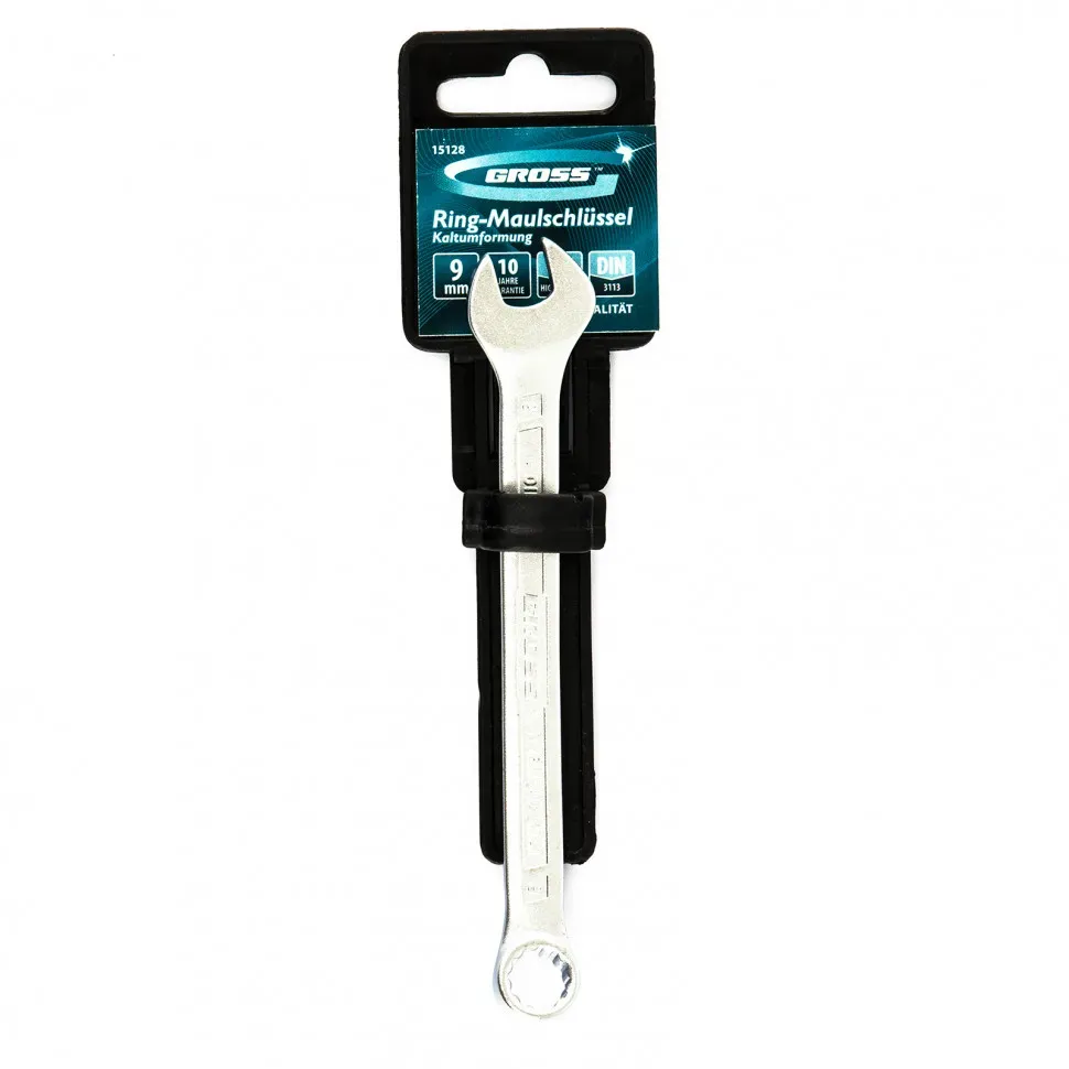 Ключ комбинированный 9 мм, CrV, холодный штамп Gross 15128 (Тайвань)