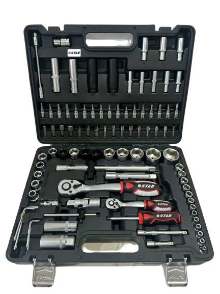 Многофункциональный набор, предназначенный для ремонта и обслуживания автомобиля, а также для выполнения других слесарных работ. Рабочие части изготовлены из хромованадиевой стали, устойчивы к коррозии. Кейс выполнен из прочного противоударного пластика, с металлическими замками. Часть головок выполнена из хром-молибдена, для возможности использовать с пневмогайковертами.