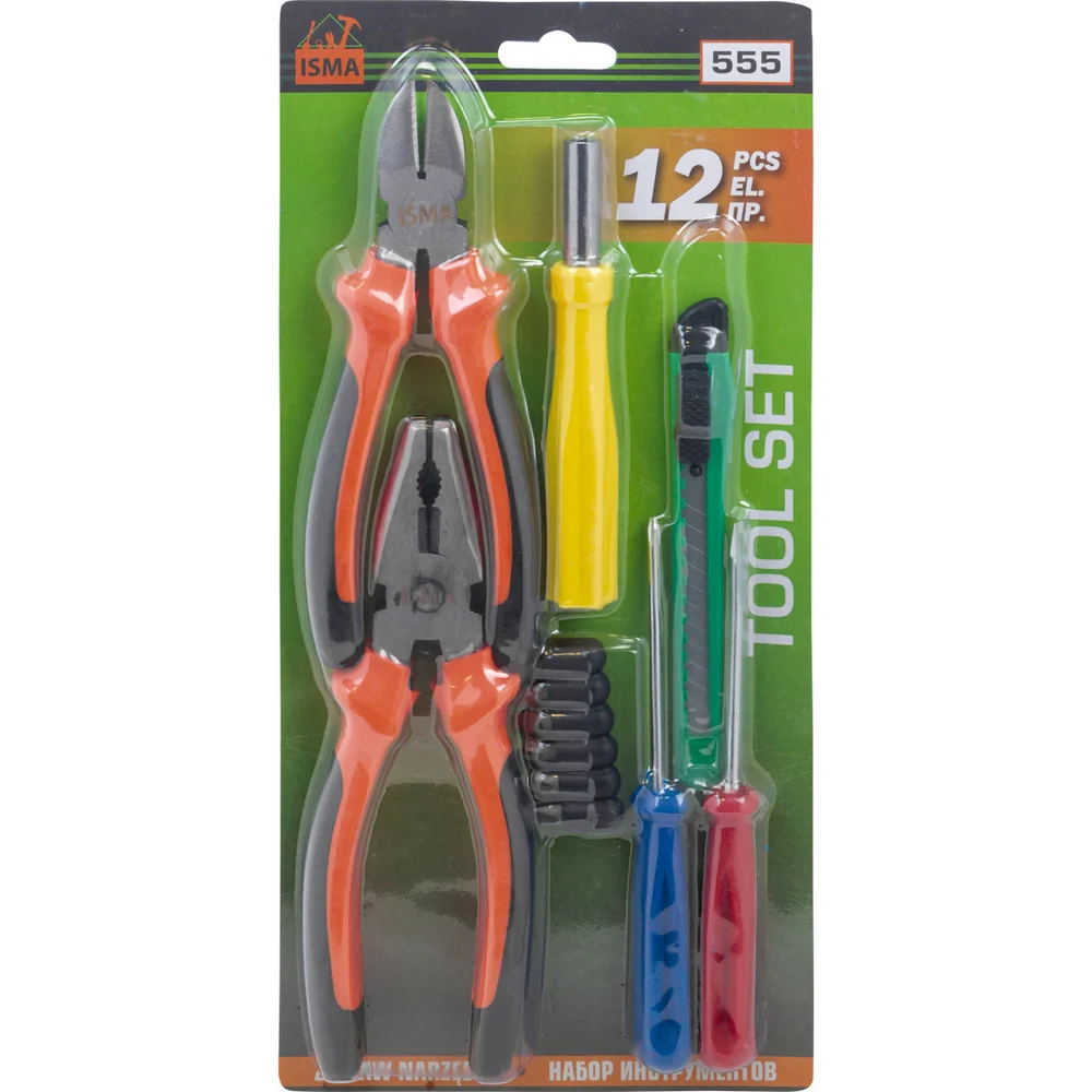 Набор инструментов в блистере 12 предметов биты: PH1,2,3,SL4,5,6мм; отвертка-битодержатель 120мм;отвертки:PH0х65мм,SL3х65мм, нож, плоскогубцы 165мм, бокорезы 150мм (Китай) - идеально подходит для домашнего ремонта и обслуживания. В комплект входят пассатижи, отвертки и биты, что делает его универсальным инструментом для различных задач. Компактная упаковка в виде блистера обеспечивает удобство хранения и транспортировки. Этот набор сочетает качество и доступную цену, позволяя легко справляться с мелким ремонтом своими руками. Обладает прочной сборкой и компактным дизайном, что делает его удобным для использования дома или в автомобильных работах. Высокая функциональность и достаточный набор инструментов позволяют выполнять большинство бытовых задач без необходимости приобретения дополнительных комплектов.