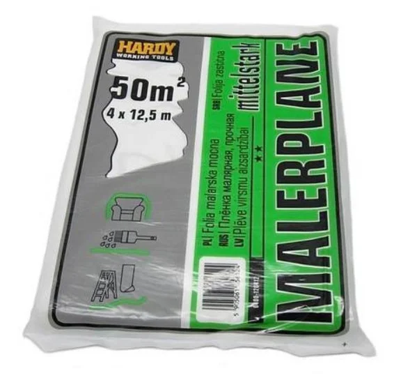 Пленка малярная укрывочная SCLEY 10мкм 4*12,5м 50м² (Польша) - предназначена для защиты поверхностей, оборудования и мебели от пыли и случайных брызг краски во время покрасочных и ремонтных работ. Пленка проста в использовании – достаточно развернуть ее, покрыть защищаемую поверхность и закрепить края скотчем.