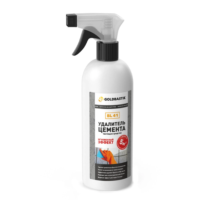 Удалитель цемента GOLDBASTIK BL 41 готовый состав (Беларусь) - сильнокислое чистящее средство для очистки строительных материалов и инструмента от цементных загрязнений, копоти и солевых отложений. Используется для удаления остатков цементных растворов с любых поверхностей, для очистки кирпичных стен от бетонных брызг, остатков кладочного раствора, извести и высолов, для удаления плиточного клея и затирки для швов, для послестроительной уборки помещений, чистки оборудования для приготовления и транспортировки бетона, для мытья форм при изготовлении тротуарной плитки, для удаления серы и копоти с фасадов зданий.
