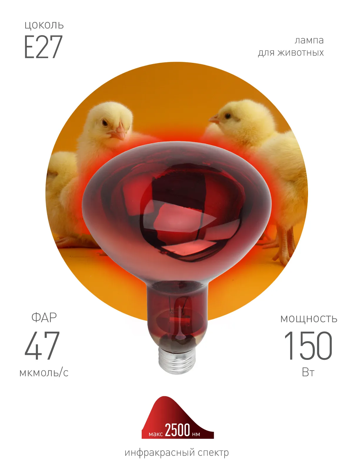 Инфракрасная лампа ЭРА ИКЗК 230-150 R127для обогрева животных и освещения 150 Вт Е27 (Великобритания)