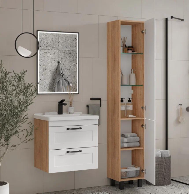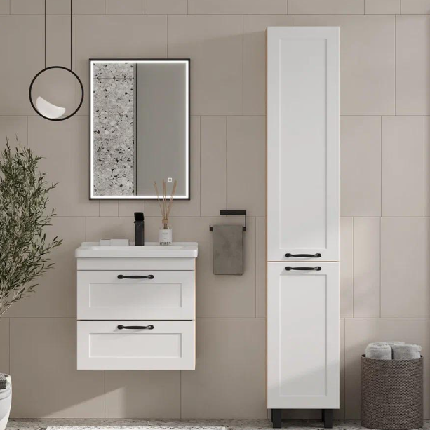 LAGO — это коллекция мебели для ванной комнаты, сочетающая в себе белый матовый цвет и текстуру дерева. Минималистичная прямоугольная фрезеровка на фасадах придает коллекции особый шарм, а дизайн в стиле современной классики делает ее особенно привлекательной. Завершают образ черные акценты в виде лицевой фурнитуры и регулируемых опор на напольных моделях. LAGO - идеальное решение для создания элегантного и стильного интерьера ванной комнаты.