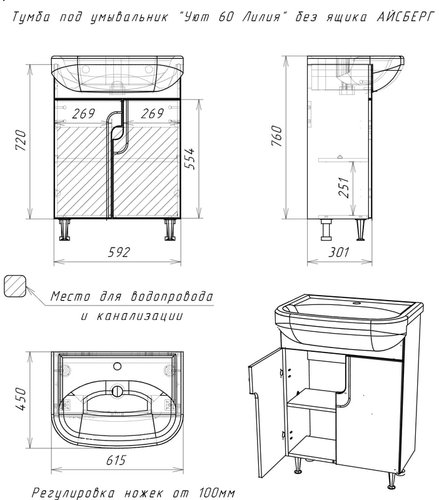Тумба Айсберг под умывальник "Уют 60 Лилия" белая (Россия)