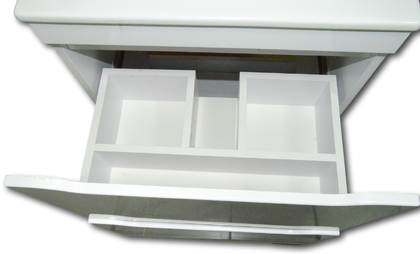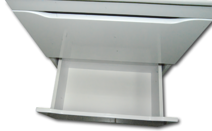 Фасад изготовлен из МДФ 16мм, облицованный пленкой ПВХ белого цвета (высокий глянец). Корпус тумбы изготовлен из ЛДСП 16мм белого цвета (Аляска) идеально сочетающийся с цветом фасада, торцы корпуса облицованы кромкой ПВХ.