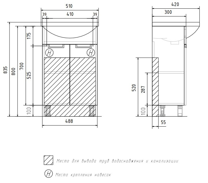 - Умывальник в комплекте: нет