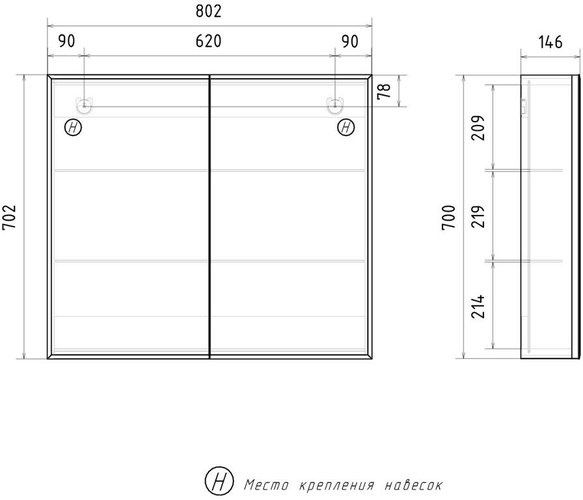 Шкаф зеркальный Volna Geometry 80 (Россия)