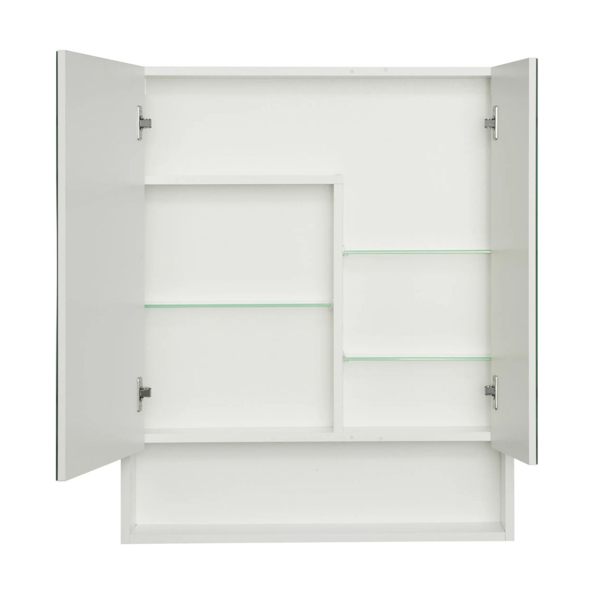 Зеркальный шкаф Сканди 70 белый Акватон (Россия) - подвесной зеркальный шкаф с открытой нишей. За распашными дверцами, оснащенными механизмом плавного закрывания, находятся асимметричные полки, позволящие расположить косметические средства различной высоты.