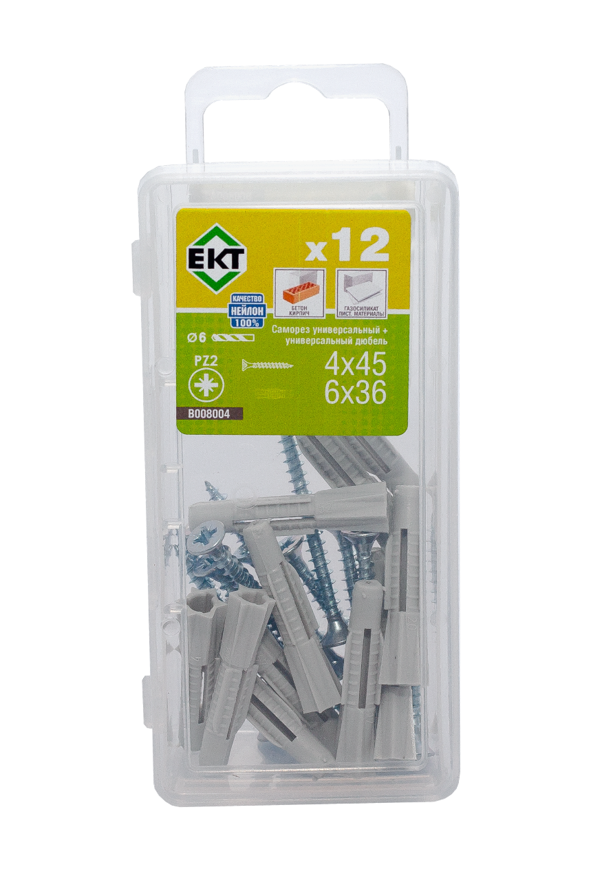 Саморез цинк 4,0х45 + универсальный дюбель UDD 6х36, нейлон (упак/12шт)