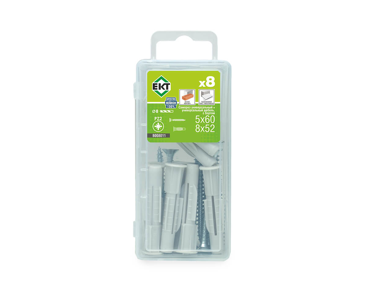 Саморез цинк 5,0х60 + универсальный дюбель UDD 8х52 нейлон (упак/8шт)