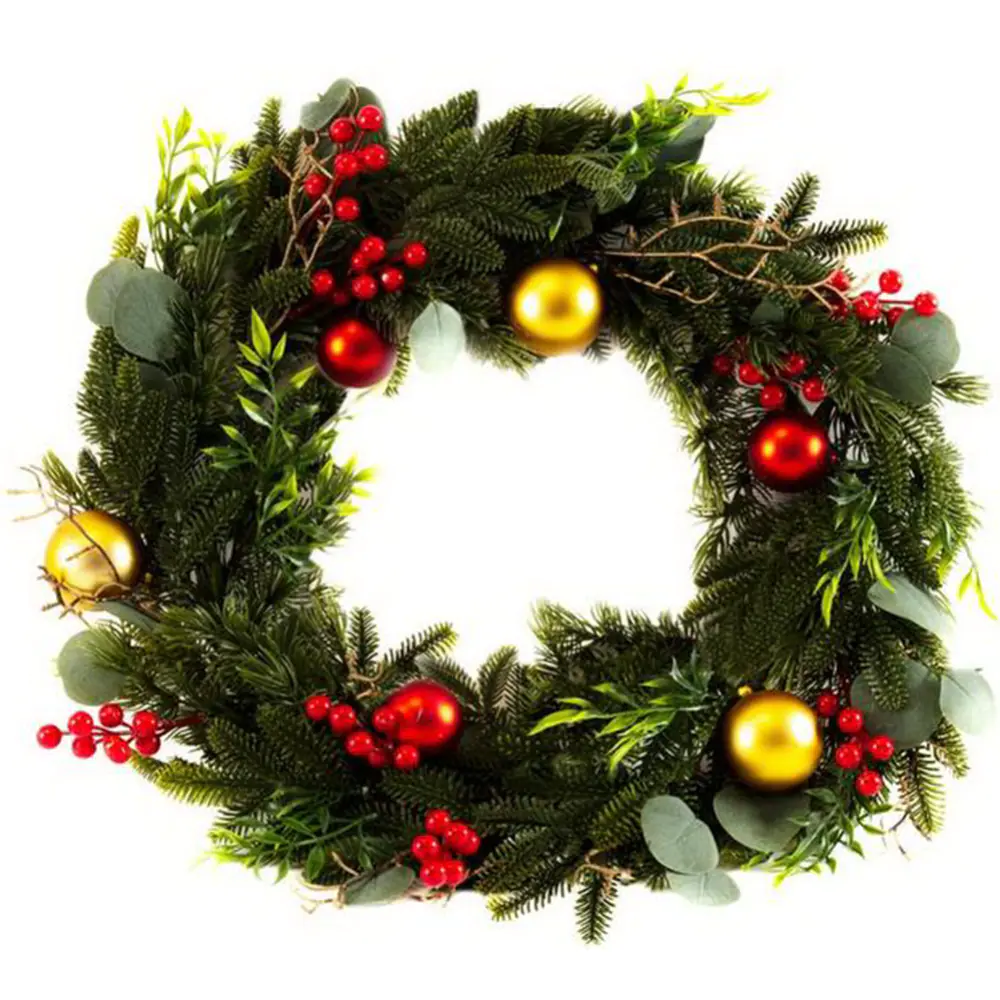 Венок новогодний декоративный украшенный 55 см HE2303-217 (Китай)