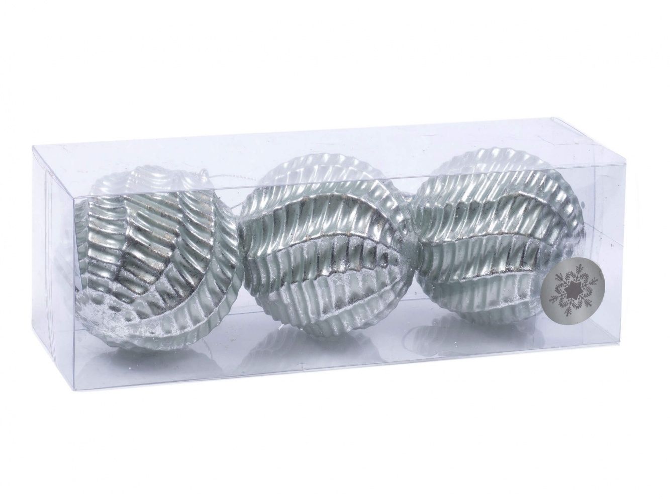 Набор шаров елочных пластмассовых рифленый 3 штуки 8 см (Китай)