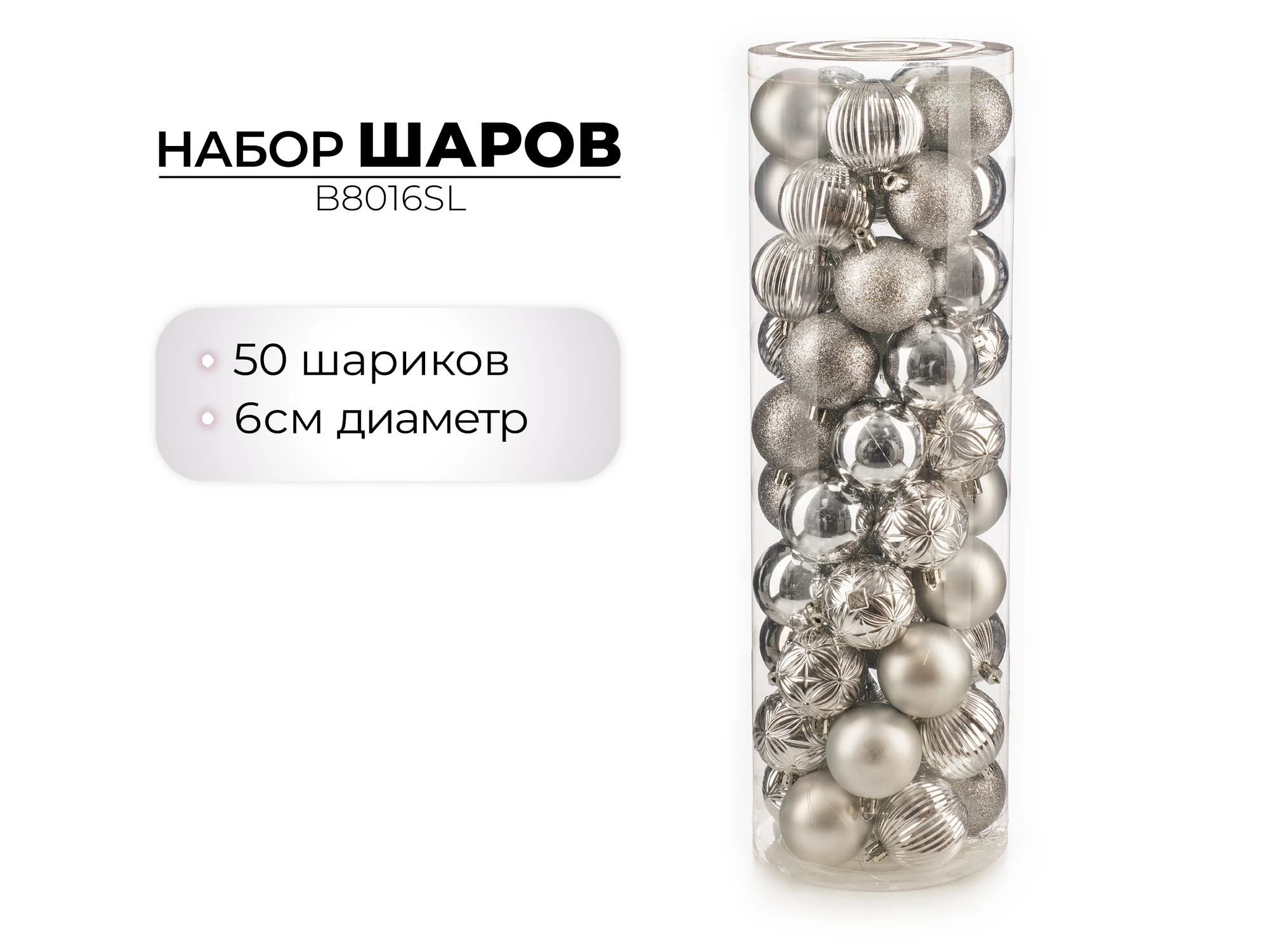 Набор новогодних шаров Ausini 6см, 50шт, серебро, B8016SL (Китай)