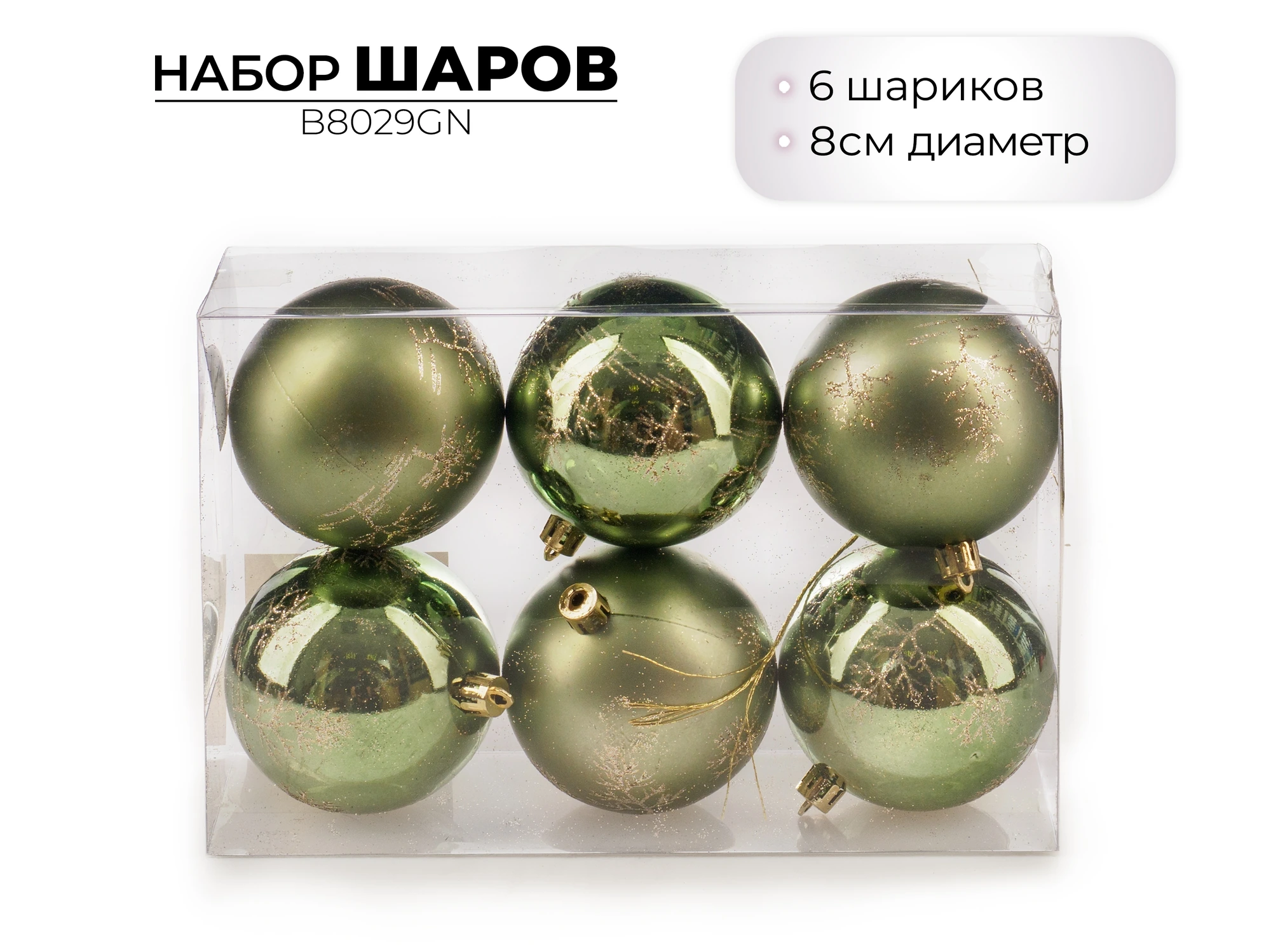 Набор новогодних шаров Ausini 8см, 6шт, зеленый B8029GN (Китай)