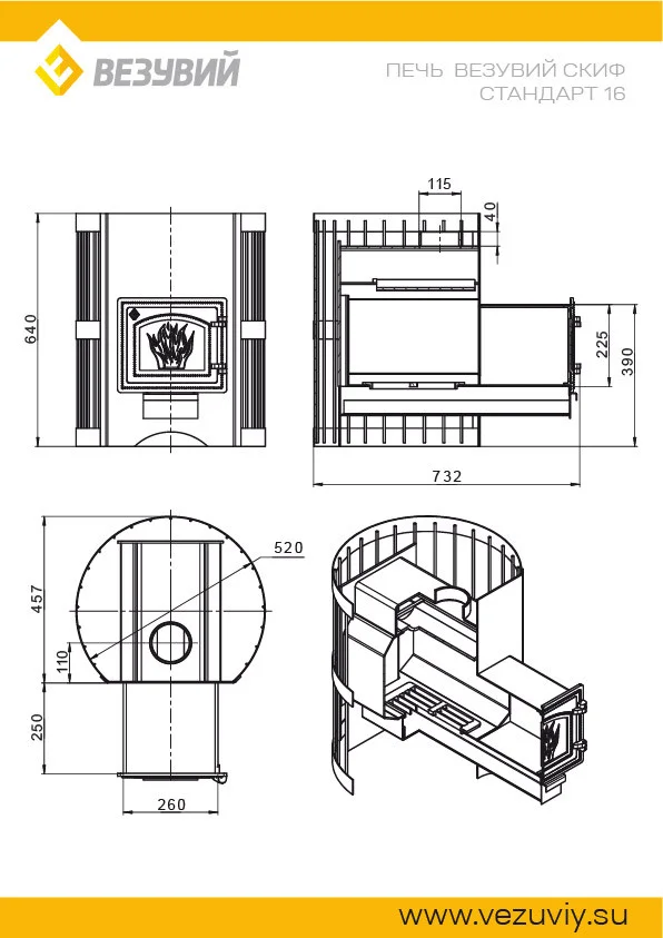 Печь ВЕЗУВИЙ Скиф Стандарт 16 ДТ-3С (Россия)