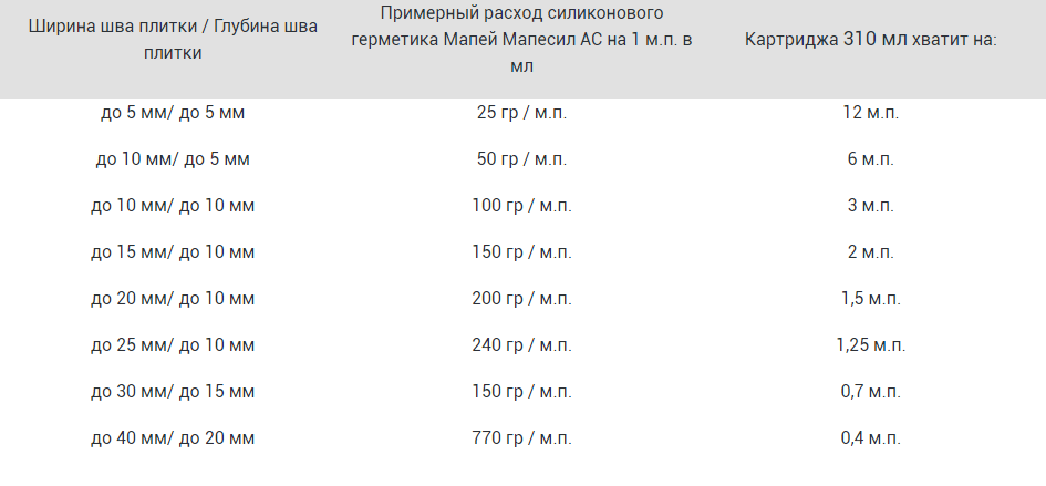 - Не используйте Mapesil AC для заполнения швов в напольных покрытиях с интенсивным трафиком. Применяйте полиуретановый (например, Mapei Mapeflex PU 45 FT)