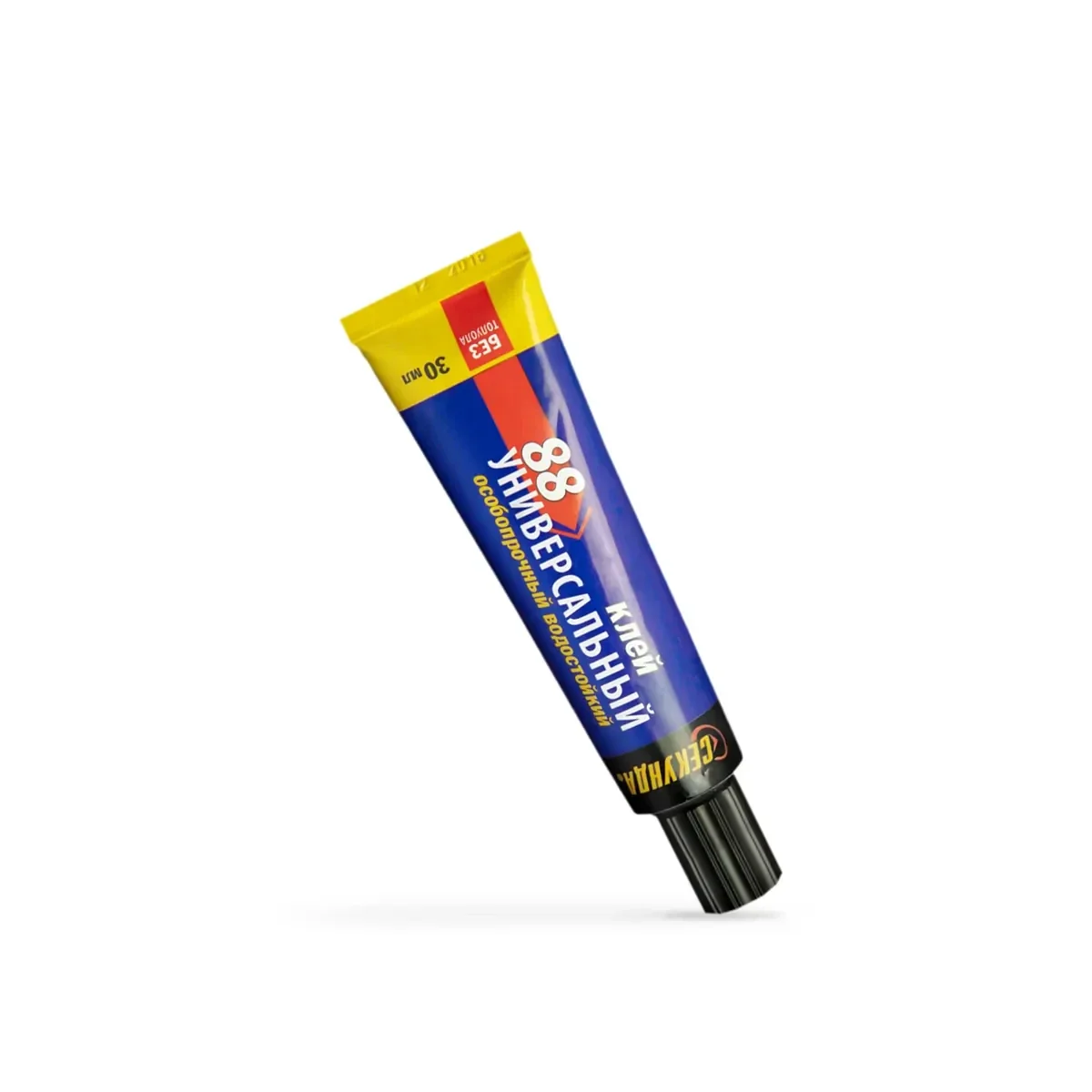 Клей Секунда универсальный 88 особопрочный 30мл применяется для склеивания резины, кожи, дерева, пластиков, картона, ткани, керамики, пробки и прочих устойчивых к растворителям материалов, образуя при этом клеевой шов, устойчивый к морской и пресной воде, не вызывающий коррозии стали и алюминиевых сплавов и сохраняющий свои свойства в широком диапазоне температур от -50 °С до +70 °С.