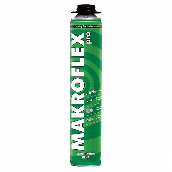 Makroflex PRO представляет собой готовую к применению, однокомпонентную профессиональную полиуретановую пену, которая затвердевает под воздействием влажности воздуха. Баллон оснащен специальным вентилем для использования с пистолетом-аппликатором.