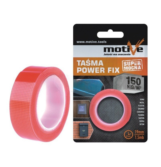 Скотч двусторонний для больших нагрузок POWER FIX 19мм*1,5м MOTIVE (Польша)