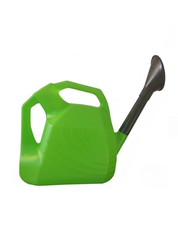 Пластиковая лейка среднего размера с удобной ручкой и насадкой-рассеивателем для полива растений.