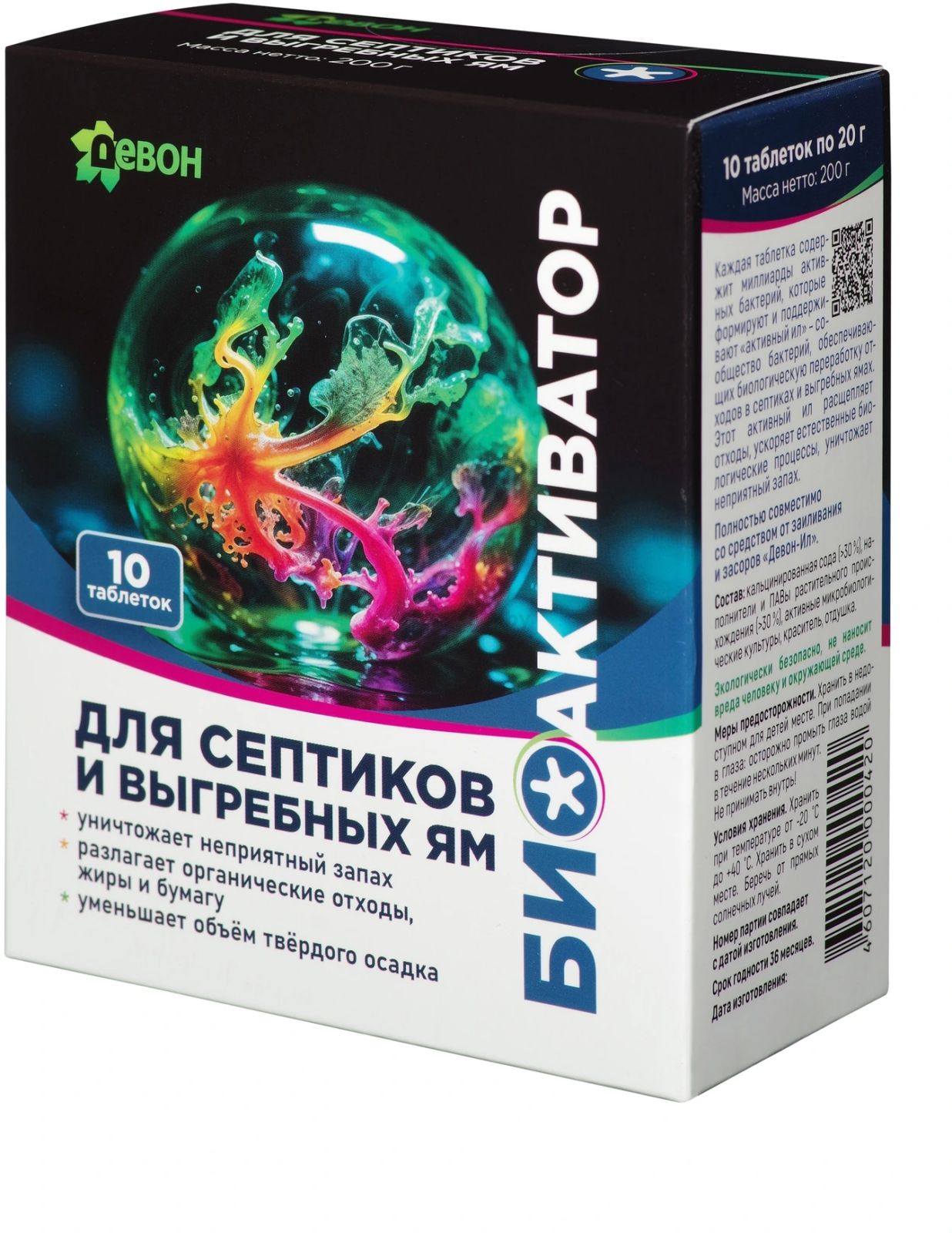 Биоактиватор для септиков и выгребных ям 200г 10 таблеток по 20г Девон (Россия)