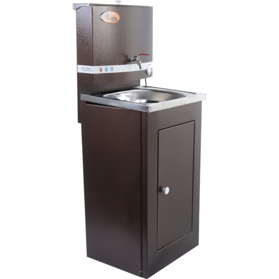 Умывальник с подогревом, медного цвета, с тумбой и нержавеющей мойкой, от российского производителя ВИХРЬ.