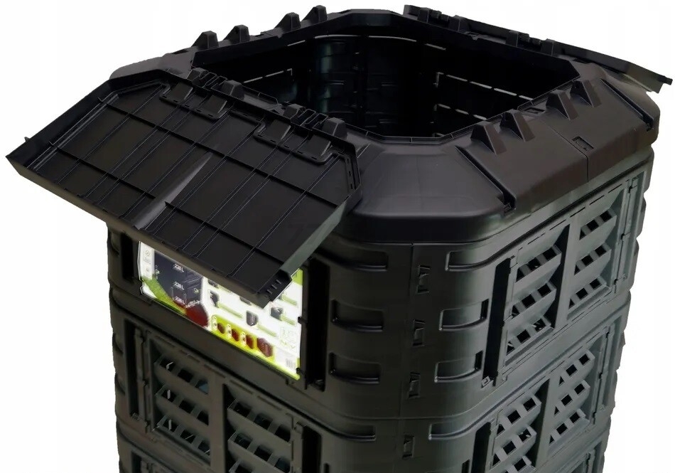 - Боковые замки надежно фиксируют все модули вместе, обеспечивая прочность и стабильность всей конструкции. - Специально разработанная система эффективной вентиляции предотвращает запахи и обеспечивает надлежащую циркуляцию воздуха внутри компостера.