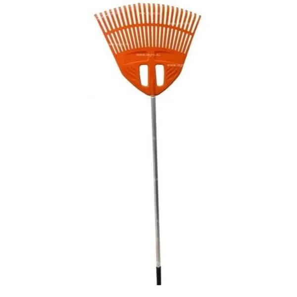 Грабли веерные пластмассовые 23 зуба "Гардения" оранжевые с алюминиевым черенком 500мм (Россия)