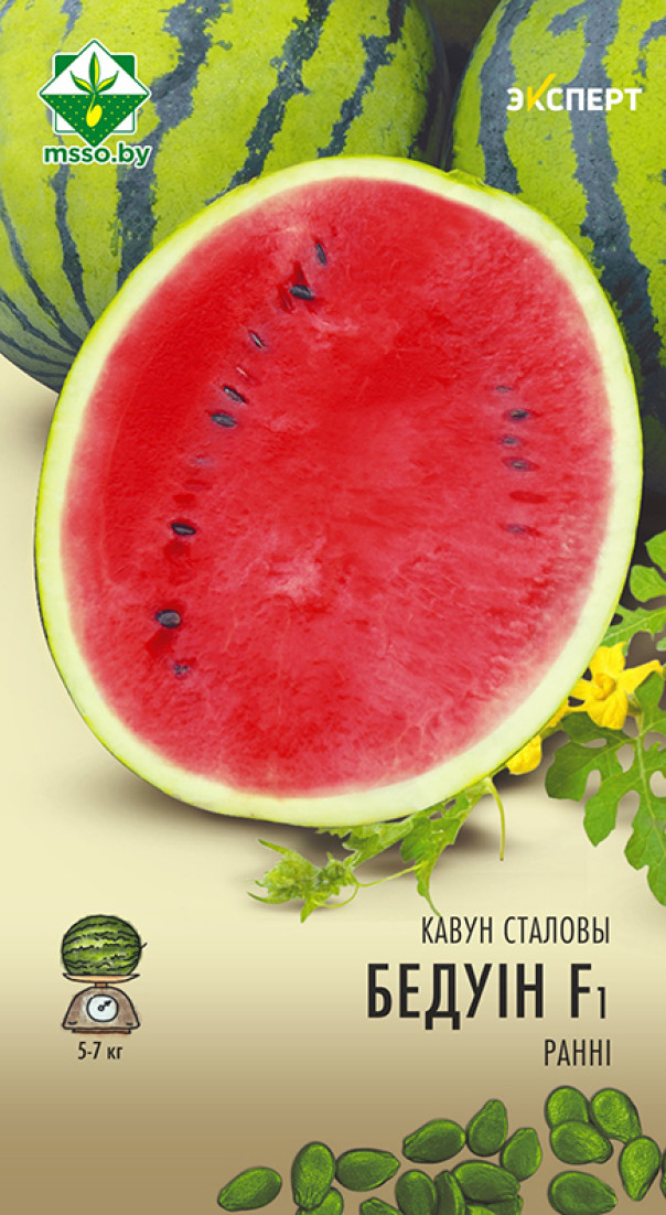 Арбуз Бедуин F1 Эксперт (Нидерланды) - это высокоурожайный сорт арбуза, который отлично подходит для выращивания как в открытом грунте, так и в теплицах. Семена Бедуин F1, фасованные в упаковку по 6 штук, принадлежат к гибридным сортам, отличающимся стабильными характеристиками и высоким качеством плодов.
