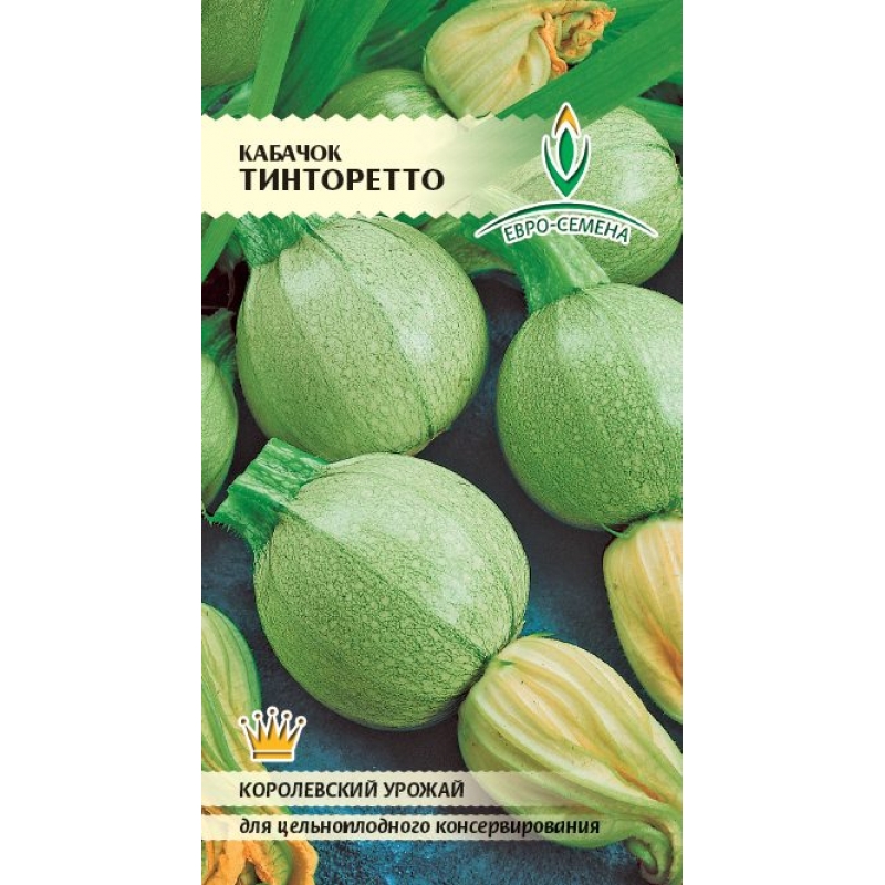 Кабачок Тинторетто (Россия) - раннеспелый сорт итальянской селекции, период от всходов до сбора 48 – 50 дней. Растение кустовое, компактное. Образует не характерные для кабачка округлые, ребристые плоды, светло-зеленой окраски, массой до 2 кг с очень нежной, вкусной, сладкой мякотью. Предназначен для использования в домашней кулинарии и цельноплодного консервирования. Сорт отличается высокой стабильной урожайностью. Выращивается прямым посевом семян в грунт или рассадным способом.