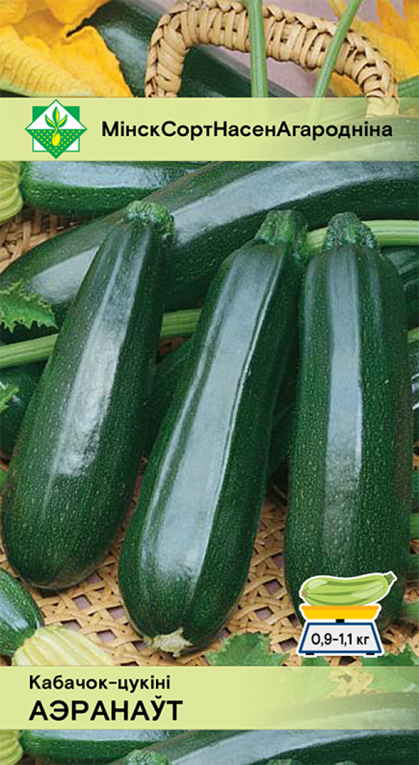 Кабачок Аэронавт 2г (Беларусь) - ранний сорт. Период от всходов до первого сбора плодов 42-46 дней. Растение кустовое, компактное, плетей мало. Плоды цилиндрические, гладкие, темно-зеленые, массой 0,9-1,1 кг. Кора тонкая. Мякоть беловато-желтая, толстая, плотная, хрустящая, сочная. Дегустационная оценка 4,5-5 баллов. Отличается длительным периодом хранения без потери товарных качеств и хорошей транспортабельностью. Устойчив к болезням.
