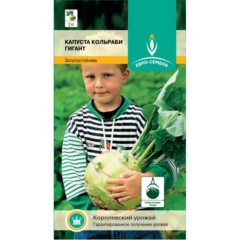 Капуста кольраби Гигант 0,3г (Россия) - высокоурожайный позднеспелый сорт, от всходов до уборки 90-100 дней.
