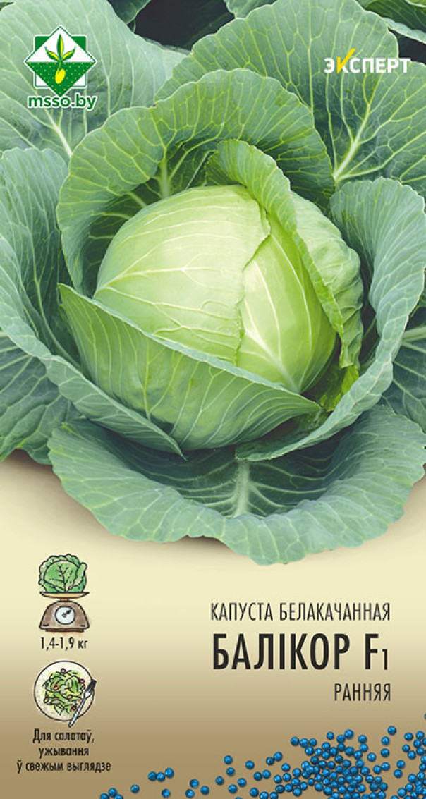 Капуста б/к Боликор F1 Эксперт (Беларусь) - ранний урожайный гибрид голландской селекции. Период от всходов до начала уборки 105-110 дней. Кочаны округлой формы, насыщенного зеленого цвета, выравненные по размеру, с плотной внутренней структурой, устойчивы к растрескиванию, что позволяет убирать их в течение достаточно длительного периода, массой 1,4-1,9 кг. Вкусовые и товарные качества отличные. Для потребления в свежем виде. Обладает устойчивостью к комплексу болезней.