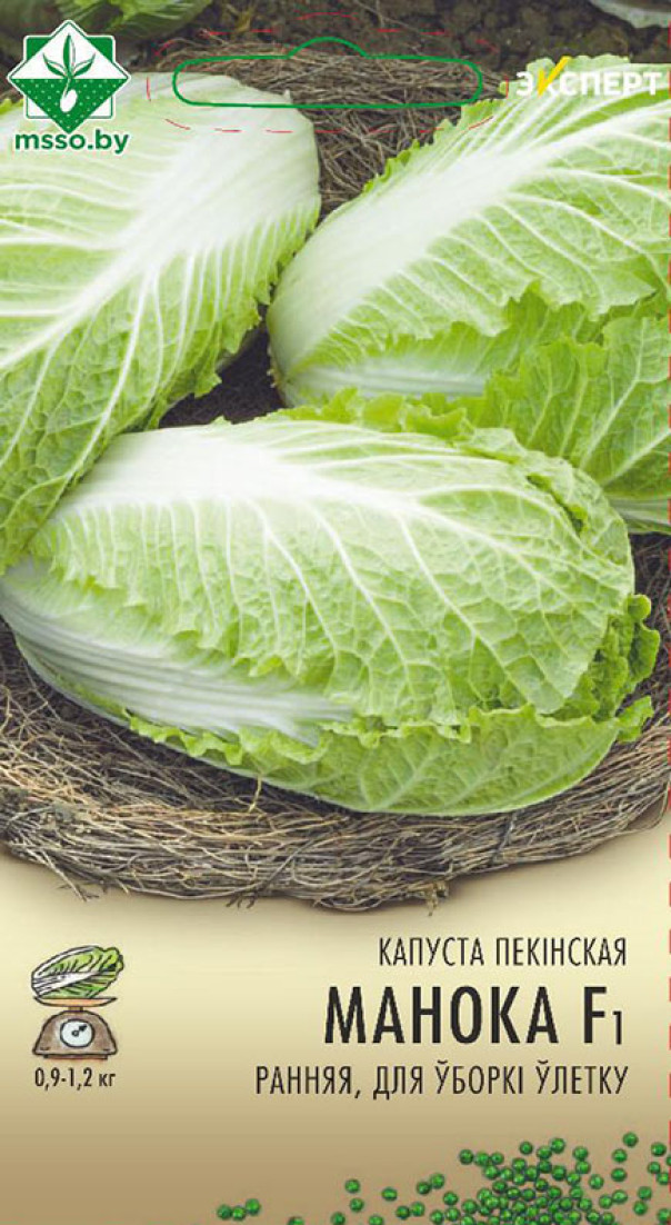Капуста пекинская Маноко F1 Эксперт (Нидерланды) - ранний высокоурожайный кочанный гибрид голландской селекции для летней уборки урожая. Период от всходов до уборки 75-85 дней. Кочаны цилиндрической формы, светло-зеленого цвета, среднеплотные, сочные, хрустящие, массой 0,9-1,2 кг. Вкусовые и диетические качества высокие. Выращивают через рассаду или посевом семян в грунт с начала мая. Устойчив к неблагоприятным условиям. При температуре ниже 12 градусов цельсия возможно стрелкование!