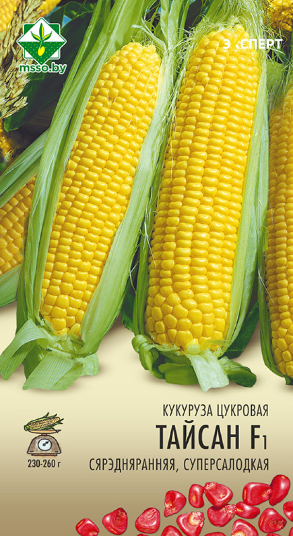 Кукуруза Тайсон F1 сахарная 3г Эксперт (Франция) - среднеранний гибрид голландской селекции. Период от всходов до технической спелости 80-85 дней. Относится к виду суперсладкой кукурузы сахарной. Растение высотой 2-2,2 м. Початок цилиндрической формы, длиной 21-23 см, диаметром 5,5-5,8 см, массой 230-260 граммов. Зерно ярко-желтое, крупное, сахарного типа. Вкусовые качества отваренной и консервированной продукции отличные. Пригоден для замораживания.