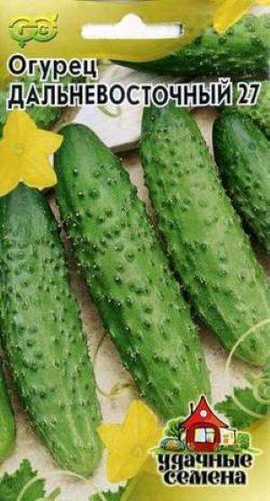 Огурец Дальневосточный 27 0,5г (Россия) - среднеспелый (40-55 дней.) пчелоопыляемый сорт, для открытого грунта и пленочных теплиц. Растение длинноплетистое, ветвистое, малооблиственное. Плоды крупнобугорчатые, с легким восковым налетом, массой 100-200 г, длиной 11-15 см, хороших вкусовых качеств как в свежем, так и в консервированном виде. Сорт устойчив к засухе и ложной мучнистой росе.