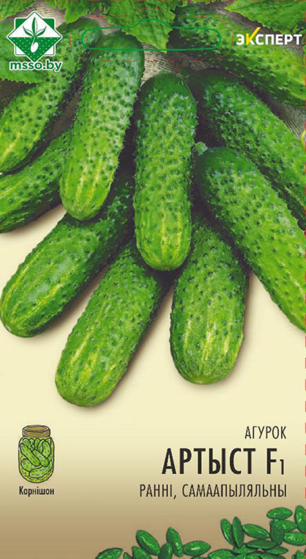 Огурец Артист F1 Эксперт (Беларусь) - ранний гибрид корнишонного типа голландской селекции. Период от всходов до плодоношения 44-48 дней. Партенокарпический (самоопыляемый), высокоурожайный, с пучковым образованием завязи. Плоды цилиндрической формы, короткие, выравненные, темно-зеленые, имеют красивый внешний вид, без горечи. Дегустационная оценка свежих, консервированных и соленых огурцов 4,8-4,9 балла. Для открытого и защищенного грунта.